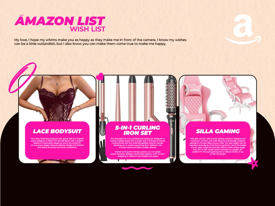 Bedømmelse af pik, Kameltå, Blottelse, Fodfetich, Olieshow, Topløs, Sexlegetøj, Brystvortelegetøj, Knebling, Spanking, Doggy style, Erotisk dans, Cuckold, Finger, Rollespil, Striptease, Blowjob, Brystsex, Twerk, Deepthroat, Orgasme, Hæle, Cowgirl, Hardcore, Handjob, Onani, Dirty talk, Dildo eller vibrator
